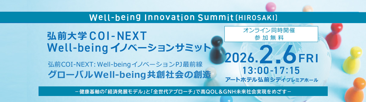 【プログラム発表】2026年2月6日、シンポジウム「弘前大学COI-NEXT Well-being イノベーションサミット2026」を弘前市・オンラインで同時開催します。※参加申込受付中!