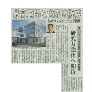 【メディア情報】弘前大学が11月19日「グローバルWell-being総合研究所」の最高顧問に米ハーバード大学教授のイチロー・カワチ氏の就任を発表したことについて、東奥日報(11月20日(木))に掲載されました