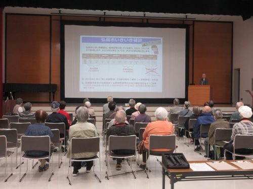 説明会当日は、今年いきいき健診を受診した、約100名の皆様が参加され、いきいき健診からの研究成果や、高齢期の幸福感に関する最新の研究報告に耳を傾けていました。