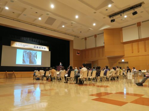 説明会当日は、岩木地区の方々を始め、昨年度より受診対象となった弘前市の住民の方々、約130名の皆様が参加され、健診結果を確認しながら医学研究科の医師等専門家からのお話に耳を傾けていました。