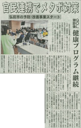 【メディア情報】 弘前市の「メタボリックシンドローム 予防・改善事業」の取り組みが弘前大学を会場に始まったことが陸奥新報(12月18日)に掲載されました