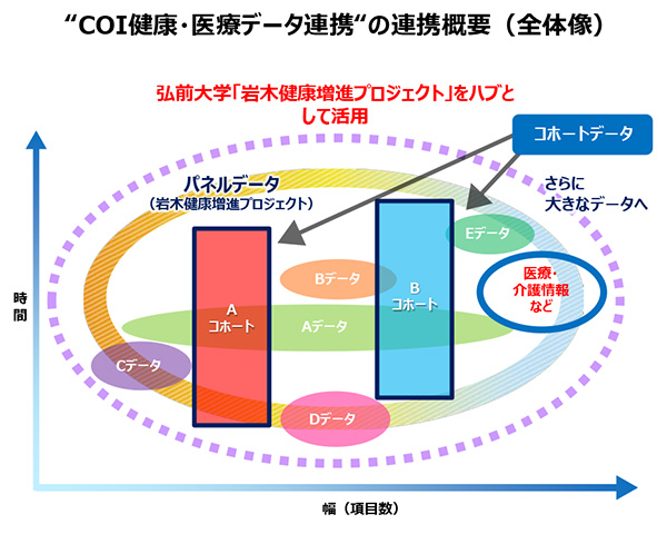 構造化チームが取り組む横断的な活動テーマである「健康・医療情報の活用に関する拠点間連携の促進」における活動主体として、弘前大学を事務局とする「COI健康・医療データ連携推進機構」(以下、「COIデータ連携機構」という。)を設置し、平成27年度より活動しています。
